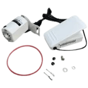 O Motor Doméstico Branco 110V 60Hz 7000 RPM é ideal para máquinas de costura domésticas. Compacto e potente, garante velocidade e desempenho constantes, permitindo costuras precisas e contínuas. Inclui pedal de controle, correia, parafusos e acessórios para instalação rápida e segura.