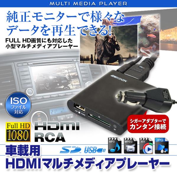 | 商品の特徴 | サンワダイレクト本店 サンワサプライオフィス・PC周辺通販\店長おすすめポイント/ : [Oriign] 車載充電器付き 手のひらサイズ メディア◆純正モニターやHDMI対応モニターに接続して様々な形式の動画ファイルや音楽ファイルが楽しめる! 手のひらサイズのコンパクトな、フルHD画質対応の小型マルチメディアプレーヤーです。USBメモリーやSDメモリカードなどに入ったコンテンツを純正モニターでお楽しみいただけます。 : InLight 超小型マルチメディアプレーヤー車載用 最大◆車載用シガー電源アダプター付属 シガー電源アダプターが付属していますので車載用として使用可能です。コンポジット出力も可能ですので純正モニターにも接続できます。 送料無料マルチメディアプレーヤー Full HD 1080P画質 オート電源 レジュームあり テレビやモニターで再生 HDMI ポータブルメディア◆フルHD1080P出力対応 MP3やFLVなど全28種類のファイル形式に対応する車載用メディア最大1920×1080の高解像度で動画をお楽しみいただけます。 HDMIマルチメディアプレーヤー AV-HD03 | マックスウィン | MAXWIN◆多くのフォーマットに対応 AVI、Divx、MEPG4、H.264、RM、RMVB、FLV、MP3、JEPGなど動画、音楽、画像ファイルに対応。 ほとんどのファイルは編集不要でそのまま再生可能です。 ◆HDMI/YPbPr/コンポジット端子搭載 HDMIやYPbPr、コンポジットの映像/音声出力端子を搭載しているので、様々なテレビやモニターに出力可能です。 ◆外付けHDD、USBメモリ、SDメモリカード対応 本体のUSBやSDメモリカード端子を搭載しているので、外付けHDDやUSB/SDメモリを接続するだけで高画質・高音質の動画や画像、 音楽をお楽しみいただくことができます。 ◆高性能処理プロセッサー搭載 BOXCHIP F10処理プロセッサーを採用、20MBの大容量の画像も再生可能です。 ◆見やすいメニュー画面 B動画、音楽、写真、設定と各項目毎にアイコン表示された見やすいメニュー画面です。 各項目に対応するファイルのみ表示されるのでフォルダ分けする手間が省けます。 ◆レジューム機能搭載 動画の途中で電源を止めても、次に電源を入れた時、その続きからの再生をすることができます。 ◆小型・コンパクトサイズ 手のひらサイズなので、設置する場所を選びません。 ※純正ナビへ接続の際にナビ側に入力端子が付属しているかご確認ください。(HDMIまたRCA端子) ※YPbP配線は付属しません。別途お買い求めください。 ※画像が映らなくなった場合は、電源ケーブルを挿しなおしてください。 ※RCA接続時に画面が白黒表示になった場合は、MENU→Video Output Mode→NTSCを選択してください。 |