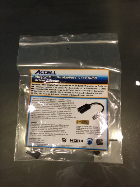 | 商品の特徴 | Accell Ultraav Mini Displayport 1.1 To Hdmi Active Adapter - MiniAccell UltraAV Mini DisplayPort 1.1 to HDMI 1.4 Active Adapter B086B-008B-2 mini displayportからHDMIへアクティブ変換するアダプターです。 Accell mDP to HDMI Adapter - Mini DisplayPort 1.1 to HDMI 1.4当方MacOS10.8.5 MountainLion MacPro(early2008)+HD5770にて4K 30Hzの表示を確認しました。 : Accell Mini DisplayPort to DisplayPort 1.1a Cable with2~3日ほど使用した後、別のディスプレイに移行し不要になりましたので出品致します。 状態 Accell UltraAV DP 1.1 to HDMI Passive Adapter P⁄N B0086B-004BHDMIコネクタ部分のフィルムも剥がしていないので、美品の部類かと思います。 動作確認済みの為、動作は問題ありません。 Accell B086B-003B-2 DisplayPort 1.1 to HDMI 1.4 Adapter(相性の問題で動作しない場合の返品はご遠慮ください) 発送は定形外郵便にて送料無料とさせて頂きます。 商品詳細 Amazon http://www.amazon.co.jp/Accell-UltraAV-DisplayPort-Adapter-B086B-008B/dp/B00ESFEUSG Macでの4K表示のまとめ Appleちゃんねる http://applech2.com/archives/36837539.html |