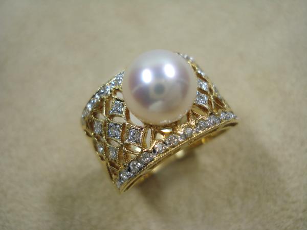 - ホーム > アクセサリー、時計 > レディースアクセサリー > 指輪 > 真珠 > アコヤ真珠 >K18 8mm アコヤ真珠 ダイヤ ミル打ち 透かし彫 リング 11号 0.25