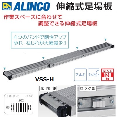 | 商品の特徴 | 【アルインコ】アルミ伸縮足場板 スタンダードタイプ 商品説明 メーカー直送:代引不可 【アルインコ】アルミ伸縮足場板 作業スペースに合わせて調整できる! 出品はタイトルのサイズです。 注意事項 当ストアではオーダーフォームを利用しております。 落札をされたお客様は、オークション終了画面よりオーダーフォームへお進みご入力頂く様お願い致します。 ご入金は必ずオーダーフォーム入力後、合計金額を確認後にご入金お願い致します。 ※確認せずにご入金頂いた場合、振込手数料等を当ストアでは返金できません。ご了承ください。 複数ご入札の場合、大型商品など同封不可能な場合も御座います。 同封希望の場合は、こちらよりメールで合計金額をお知らせいたします。 基本的に新品のみの出品です。また正規ルート仕入商品です。 電動工具メーカー マキタ 日立 ボッシュ リョービ マックスなど多数のメーカーの登録代理店をさせて頂いていますので安心してご入札下さい。 ●落札手数料は頂きません。消費税別途頂戴いたします。 ●お支払い金額につきましては落札金額+消費税+送料(消費税別)になります。 ●同日落札商品に関しましては、出来る限り同封いたします。 ※1円出品商品は同封できません。 ●代引き決済の場合、別途代引き手数料が発生いたします。 ●通常の納期は発送までに1~2営業日ですが、場合によっては5営業日ほど掛かる場合もあります。 取り寄せ商品でメーカー欠品等の為、納期が1か月程度掛かる場合も御座います。お急ぎの場合はご在庫確認お願いします。 ●落札者による落札後のキャンセルの場合、落札金額の5%をお支払いただきます。 ●必ず出品内容をご理解頂いてから入札下さいますよう、お願い致します。 ●領収書の発行も致しますので、お申し付け下さい。(代引きの場合は運送業者より商品引渡しの時、領収書を発行いたします。) ★当ストアの出品は基本的に西濃便 ヤマト便発送のみです。運送会社の選択は出来ません。 また当店への 引き取り、他運送会社での発送 はお断りしております。 ■■ 初期不良保証 ■■ ● 到着後7日間以内 の不良品・通常使用による故障を保証致します。(商品交換・修理・返金・送料当方負担) ●二ヶ月間の 無料 修理保証させて頂きます。メーカー保証書が付属されている場合は保証書の保証期間期日と致します。(送料お客様負担) ■保証期間内でも次の場合は有償扱いとなります。 ・使用上の誤り、改造・不当な修理による故障及び損傷 ・商品到着後の移設、輸送、落下などによる故障及び損傷 ・バッテリー、電池、電球、刃物など消耗品の磨耗、故障 ☆メーカー保証書等、ユーザー登録により保証期間盗難・火災保険等が適用される商品は、必ず落札者様でユーザー登録して下さい。 当ストアでは、落札者様が登録していない場合、責任を負うことは出来ません。 発送詳細 当ストアの出品は基本的に当ストア指定の運送会社発送のみです。 また当店への引き取り、他運送会社での発送はお断りしております。 送料は全国一律2000円(消費税別) *時間指定は出来ません *消費税率変動する場合がある為、送料を税別に致しました。申し訳ありません。 この商品はすべて直送になりますので、代引き決済はできません。 北海道・沖縄・離島への発送は出来ません。 法人のお客様のみの販売になります。 個人経営者のお客様への直送は可能です。 (たとえば ・・建築 ・・工務店 ・・商店・・造園・・屋など屋号があれば可能) 個人宅への直送はできません。 ご要望があれば直送いたしますが、1台に付送料2160円追加になります。 ★当ストアの出品は基本的に運送便発送のみです。(メール便等は除く) また当店への引き取りはお断りしております。 支払方法 ■銀行振込 ■ゆうちょ銀行 ■Yahoo!かんたん決済