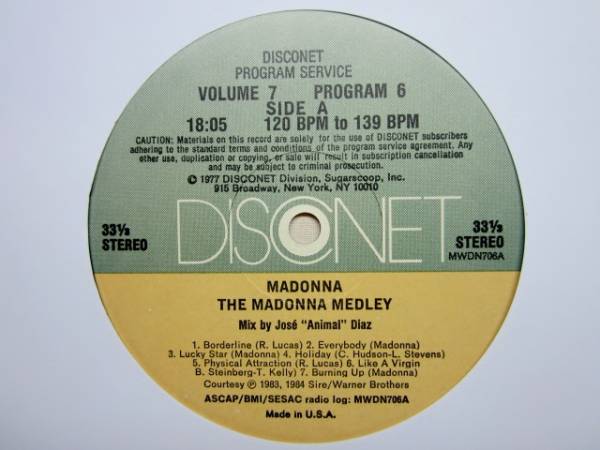 | 商品の特徴 | Disconet/Madonna Medley/Rare US orig12"/> madonna - medley mix (djpitsios) - YouTube商品説明 Madonna Medley [Disconet - \u0027The Madonna Medley\u0027]11月18日(水)終了 Rare original soul funk disco remix series12''. Madonna - The Madonna Medley【Media】VG++/VG++ strong vg++ 【Sleeve】ORIGINAL HEAVY DUTY PLAIN SLEEVE wear Disconet Dance Classics: CD Series #2 \u2013 CD (Compilation, Promo【Label】 【Format】12'' 【Genre/Style】DISCO 【Country】UNITED STATES 【Released】1985 ORIGINAL COPY Audio Hard to find rare original Disconet remix series. 市販盤とはヴァージョンが違う、ディスコネット オンリーのエディット/リミックス。 注意事項 ■グレーディング表記■ orig. = original pressing オリジナル盤 re = repressing/reissue 再発盤等 tp = test pressing テスト・プレス pro/wlp = promoプロモ/white label promo白ラベル・プロモ pc = picture cover ピクチャー・ジャケ co. = cutout カットアウト dh = drill hole ps/gps = promo stamp/gold promo stamp プロモスタンプ rw = ringwear リングウエア we = wear 擦れ sc = scuff キズ tear/torn 破れ、割れetc stain = シミ/ヨゴレ stoc = sticker on cover ジャケにシール/ステッカー等あり staoc = stamp on cover ジャケにスタンプあり stol = sticker on label ラベルにステッカーあり staol = stamp on label ラベルにスタンプあり wol = write on label ラベルに書き込みあり woc = write on cover ジャケに書き込みあり seam split = ふち抜け等 peeled = 剥がれ bent = 折れ/曲がり 出品レコードは基本的に目視によるグレーディングです。 状態表記と著しく異なる場合のみ返品可能です。 到着より3日以内に、取引ナビからお知らせください。 評価欄からご連絡いただいた場合は、ご対応出来ませんのでご了承ください。 ★盤★ 【M】使用しません ミント=パーフェクト・コピー (僅かな擦れ、キズなどが有ってはいけない完璧なもの。まずありません。) 【M-】新品または美品 (スレ、キズなどが有る場合でも、ほとんど目立たないもの) 【VG++~M-】比較的綺麗ですが、ごく僅かなスレ、薄キズはあります。 【VG++】一般的な中古レコード/音に出ない薄キズ、スレ等。 良く見かけるEX表記のものと、ほぼ同グレードです。 【VG+】スレ、キズ等が少し目立つもの。軽いノイズ等が出る場合あり。 【VG】スレ、キズ等が多いもの。ノイズ等が出る場合あり。 【VG-~G+】スレ、キズ等がかなり多いもの。ノイズ等。 ★試聴クリップ youtube etc 音源と関係ない広告が出ている場合が有りますが、 関係ないので無視してください。 ★ジャケット★ 【S.S.】未開封 未開封盤は、いかなる場合も返品をお受けできません。ご了承ください。 buyer's gamble. 【M】使用しません(キズや擦れなどが全くない物。まずありません。) 【M-】新品または美品 【VG++~M-】比較的綺麗なもの 【VG++】一般的な中古レコード、カットアウト、軽いスレ、シール等 【VG+】スレ、キズ、リングウエア、ヨゴレなどが少し目立つもの。 カットアウト、書き込み、シール等 【VG】目立つ汚れ、スレ、破れ、キズ、リングウエアなどがあり、使用感があるもの。 カットアウト、書き込み、シール等 【VG-】目立つ汚れ、スレ、破れ、キズなどが多く、かなりの使用感があるもの。 カットアウト、書き込み、シール等。 【G+~POOR】ボロボロ。目立つ汚れ、スレ、破れ、キズ等。 ★抜け、破れ等が有る場合もございますが、プレーン スリーヴ、 インナー スリーヴのグレーディングは行っておりません。 ■注意■ 製品の性質上、 新品および美品でも全くノイズが入らないと言うことではございません。 見た目VG表記でもノイズがほとんど無いものもあります。 逆にM-でも音に出るノイズが有る場合があります。(プレスフォルト等) 問題が有る場合、その都度表記します。 またレコードを再生する環境(オーディオシステム、針圧等) の違いによりノイズが出る場合もございます。 上記のグレーディング表記は、 あくまで個人的な主観によるものと御理解ください。 状態表記と著しく異なる場合を除き、 ノークレーム・ノーリターン・ノーキャンセルでお願いします。 購入意思のない方、イタズラ入札をされる方の入札は固くお断りします。 また業者の方、転売目的の方の入札はご遠慮ください。 落札当日のご質問には、お答えできない場合が多々ありますので、 商品についてのご質問がございましたら、 ご入札前、お早めに頂けますようお願いいたします。 お取引は、ご落札日より7日以内で完了とさせて頂きます。 ご落札後、当方より取引ナビにて御連絡させていただきます。 お手数でも、ご連絡日より3日間以内に御返信をお願いいたします。 3日間以内に御返信を頂けない場合は誠に残念ですが、 落札者様都合でキャンセルとさせていただきます。 お振込み手数料は、落札者様のご負担となります。 発送詳細 ★発送はご決済頂いた翌日とさせて頂いております。 お届けご希望日時のある場合は、余裕をもってお申し付けください。 かんたん決済にてお手続き頂いた場合は、 発送は入金確認が出来た翌日の発送となります。 ◆ゆうパック(保障あり/80サイ