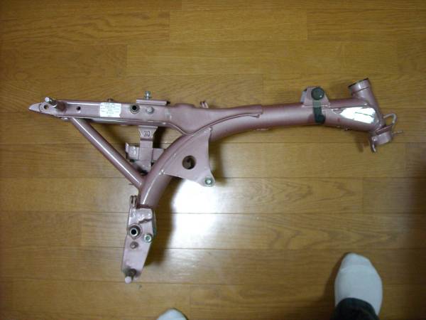 | 商品の特徴 | ゴリラ6V純正フレームです。ピンクメタリックに塗装されています。添付書類は、廃車申告受付書兼譲渡証明書です。書類では総排気量106㏄となっています。