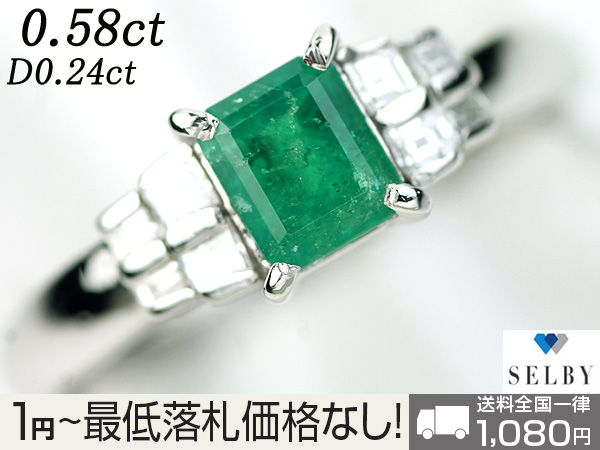 - ホーム > アクセサリー、時計 > レディースアクセサリー > 指輪 > カラーストーン > エメラルド >1円~Pt エメラルド ダイヤリング 0.58ct D0.24ct SELBY