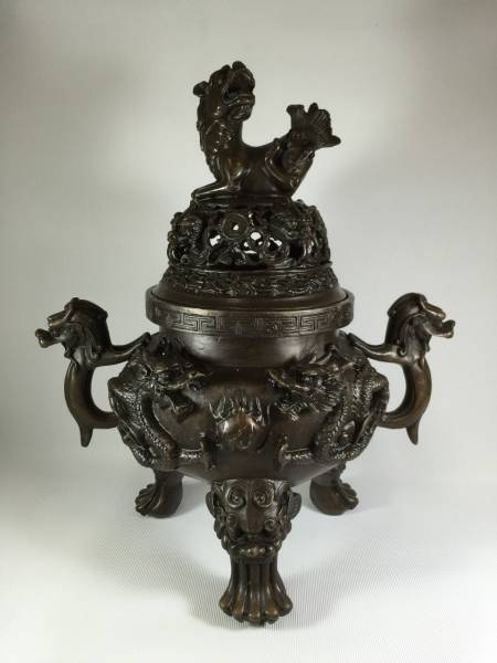 - ホーム > アンティーク、コレクション > 工芸品 > 金属工芸 > 銅製 > その他 >倣骨董品 青銅器 龍獅堂々香炉 大明同徳年 収蔵 中国 美術 工芸
