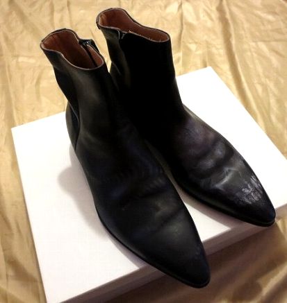 | 商品の特徴 | Martin Margiela 22 ダメージ加工 レザーローカットブーツ★ブランド★マルタンマルジェラmartin margiela22 ★カラー★ブラック 100足限定のモデルで定価は31万ほどでした。 Martin Margiela 22 ダメージ加工 レザーローカットブーツ★コンディション★数回しか着用していませんので目立ったダメージ等ありませんが Maison Martin Margiela 22 メゾン マルタン マルジェラ 22ユーズド品になりますので神経質な方のご入札はお控え下さい。 ★サイズ★41ヒール24アウトソール294cm ★支払方法★銀行振込代引は対応してませんのでご了承下さい。 ★私の出品物は全て本物です。★ Martin Margiela22(マルタンマルジェラライン22) 足袋ブーツ022707