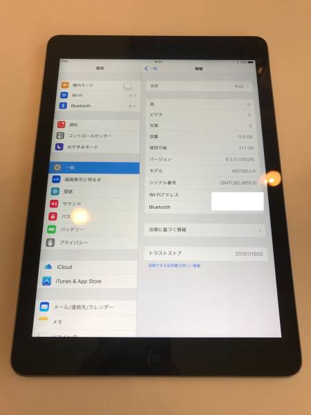| 商品の特徴 | 【本体状態】 (外観) ■中古 ■傷 ■フレーム歪み (出品時各種動作確認) ■各種ボタン、動作確認済み◯ ■フロント&メインカメラ→動作確認済み◯ ■タッチパネル操作→動作確認済み◯ ■WiFi接続→動作確認済み◯ ■充電テスト→動作確認済み◯ ■インターネット接続テスト→動作確認済み◯ ■音楽、動画再生テスト→動作確認済み◯ 【アクティベーションロック確認サイトURL】 https://www.icloud.com/activationlock/ アクティベーションロックはかかっておりません。ご安心下さい。 ※出品前に上記の内容にて動作確認を行っておりますが、簡易検品の為ジャンクとして出品させていただきます。気になる点などの質問等御座います場合は入札前に必ずご質問下さい。中古ジャンク品の為、動作確認内容等は出品時の動作となります。商品到着後に本体に不具合があった場合でも発送後の返品等一切受け付けておりません。ご理解いただけるかたのみご入札下さい。ご自身で修理等できるかたの入札をお勧めしております。 ※商品画像2枚目のWi-FiアドレスとBluetoothの欄は個人特定を防ぐため伏せてあります。ご了承下さい。 (商品内容) ■iPad Air Wi-Fi 16GB グレイ (お支払い) かんたん決済 (発送方法) ゆうパックまたはヤマト運輸 ※送料着払い (お取引につきまして)※入札前にかならずお読み下さい。 ・ノークレーム・ノーリターン・ノーキャンセルでお願いします。神経質な方は入札をご遠慮ください。 ・落札後の出品者からの取引連絡後、12時間以内にご連絡がない場合落札者都合のキャンセルを行う場合が御座います。ご了承下さいませ。 ・オークション終了後3日以内にお支払い頂けないかたの入札はご遠慮下さい。3日以内にお支払い頂けない場合は落札者都合によるキャンセルを行う場合が御座います。 ・ジャンク品の本体動作・利用制限などに関する保証は御座いません。ご了承いただける場合のみご入札ください。 ・商品説明は可能な限り商品状態を記載させていただいておりますが、限界が御座います。ご不明な点が御座いましたら必ず入札前にお問い合わせ下さい。可能な限りご返答させて頂きます。落札後のクレームは一切受け付けません。