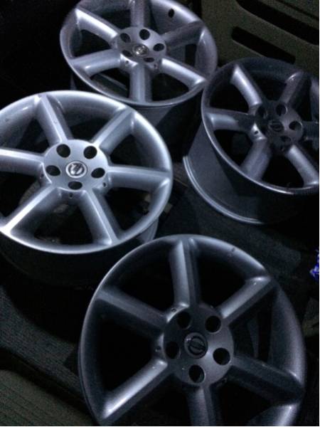 | 商品の特徴 | フェアレディZ 純正18インチアルミホイール4本になります。 PCD 114.3 ハブ径 約66mm 8J+30 全体的に傷が多いです。ガリ傷もあります。(写真にあるものが1番大きい傷です) 歪みやクラック等は無いので使用は可能です。 付いているタイヤは溝がなく、変形もしてるので交換してください。ホイールの保護用とお考えください。 商品が大きいので直接取引限定(送料無料)となります。当方は神奈川県南部住みとなりますので神奈川県内での取引になります。(近隣の都道府県の場合は質問欄にてご相談ください) また、場所によってはこちらから軽トラで伺うことも可能なので質問欄にてご相談ください。 (2016年 12月 27日 15時 37分 追加) 他サイト、SNSなどでも出品しているのでヤフオク以外で売れた場合オークションを取り消す場合がございます。ご了承ください。