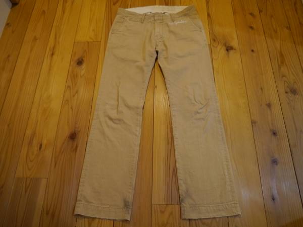 | 商品の特徴 | TMT BIG HOLIDAY チノパンツ 刺繍サイズLです。 汚し・ダメージ・色落ち加工が施されたチノパンツです。 表にはBIG HOLIDAY、裏にも刺繍がほどこされ、非常にかっこいいです。 これからの春にぴったりの1着かと、是非ご活用ください。 股上約24cm 股下約83cm 裾幅約22cm ウエスト約42cm 綿100% サイズL ※ノークレーム・ノーリターンでお願い致します。 ※「新規ID」の方は落札後24時間以内にお名前・ご住所・電話番号のご連絡が無い場合は 落札者都合によるキャンセルとさせていただきます。 ※発送は、レターパックライト(郵便受け)を予定しております。
