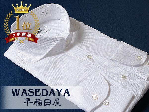 新品【日本製】早稲田屋シャツ 形態安定加工 綿100% 長袖 カッタウェイシャツ / スリムモデル【L/41-84】白ホワイト