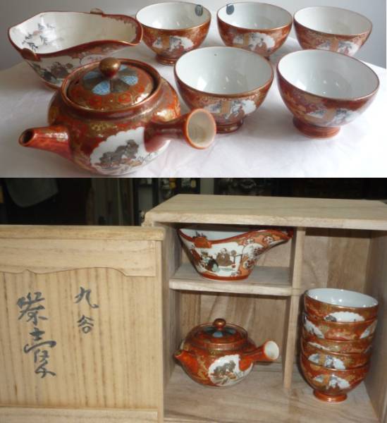 - ホーム > アンティーク、コレクション > 工芸品 > 陶芸 > 日本の陶磁 > 九谷 >B59 明治 九谷 赤絵 金彩 煎茶器 急須 湯呑茶碗 湯冷 揃 桐箱