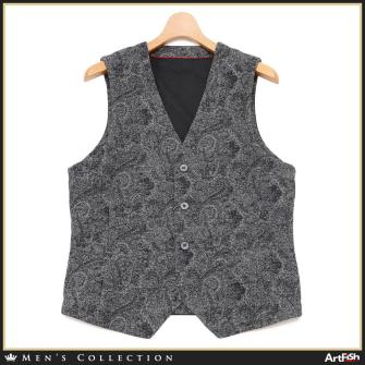 barassi 【伊】白黒系 ペイズリー柄 ジャガード 日本製 3ボタン ジレ ベスト d741*s48新品