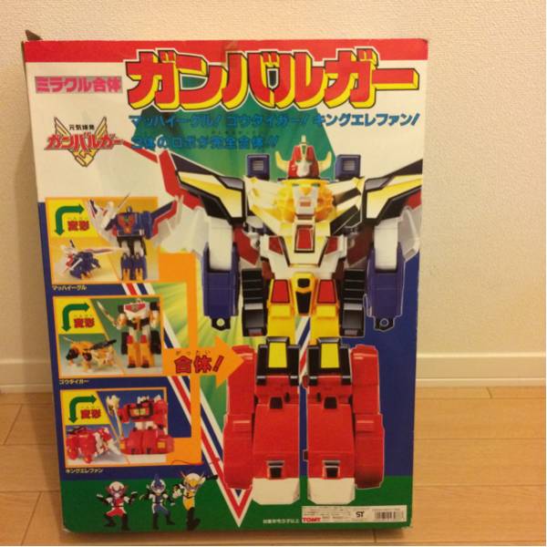 | 商品の特徴 | マッハイーグル、ゴウタイガー、キングエレファンが合体しガンバルガーに! 超獣ロボが完全合体! 【アニメストーリー】 ある日、地球を大魔界に変えようと目論む暗黒魔王『ゴクアーク』の封印が解かれた。 太古から地球を守ってきた神秘の戦士『エルドラン』は再度封印を施すが、すでに地球は大魔界の魔道士『ヤミノリウスⅢ世』が送り込まれていた。 一方、青空小学校4年の超腕白トリオ、霧隠虎太朗、流崎力哉、風祭鷹介の三人は、山中で巨大ロボットを発見する。すると突然三人の目の前に輝く人物エルドランが現れ、超能力、そしてそのキーとなる『ガンバーコマンダー』を授けて消えた。 地球の未来は、元気一杯の少年達『ガンバチーム』に託されたのだ。 超能力とミラクル合体ロボ『ガンバルガー』を操り、ヤミノリウスが呼び出す『魔界獣』との戦いを繰り広げることとなった変身ヒーローガンバチーム。さらに三人にはヤミノリウスに「正体がばれたら犬になる」という呪いがかけられてしまうのだった。 しかし度々訪れるピンチにも、三人は持ち前の元気で立ち向かう! おもちゃは20年以上たっておりますが、比較的状態は良く、作品としては色褪せることのない素晴らしい逸品であると思います。 箱は使用感を認め、説明書はありません。 ゴウタイガー、マッハイーグル、キングエレファンの三体が一箱に入っており、ファイターモード・アニマルモードの二段変形が可能で、何と三体を合体させることができ、ガンバルガーとなります!! この大箱は出回っているものが少ないのでかなり貴重であると思いますよ!!