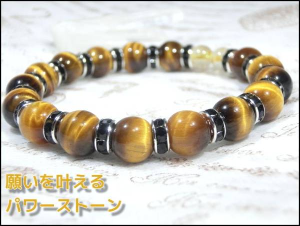 - ホーム > アクセサリー、時計 > メンズアクセサリー > ブレスレット、バングル > その他 >黒◆タイチンルチル タイガーアイ 天然石ブレス◇パワーストーン