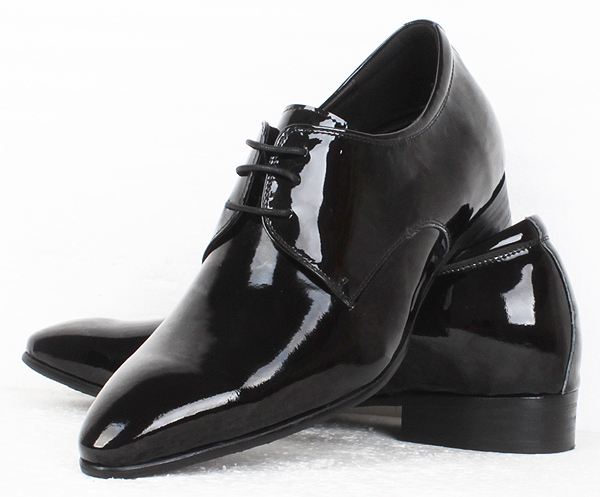 新品!送料無料 本革 エナメル シークレットシューズ ビジネスシューズ 身長高 ロングノーズ ドレスシューズ ブラック ◇24.5