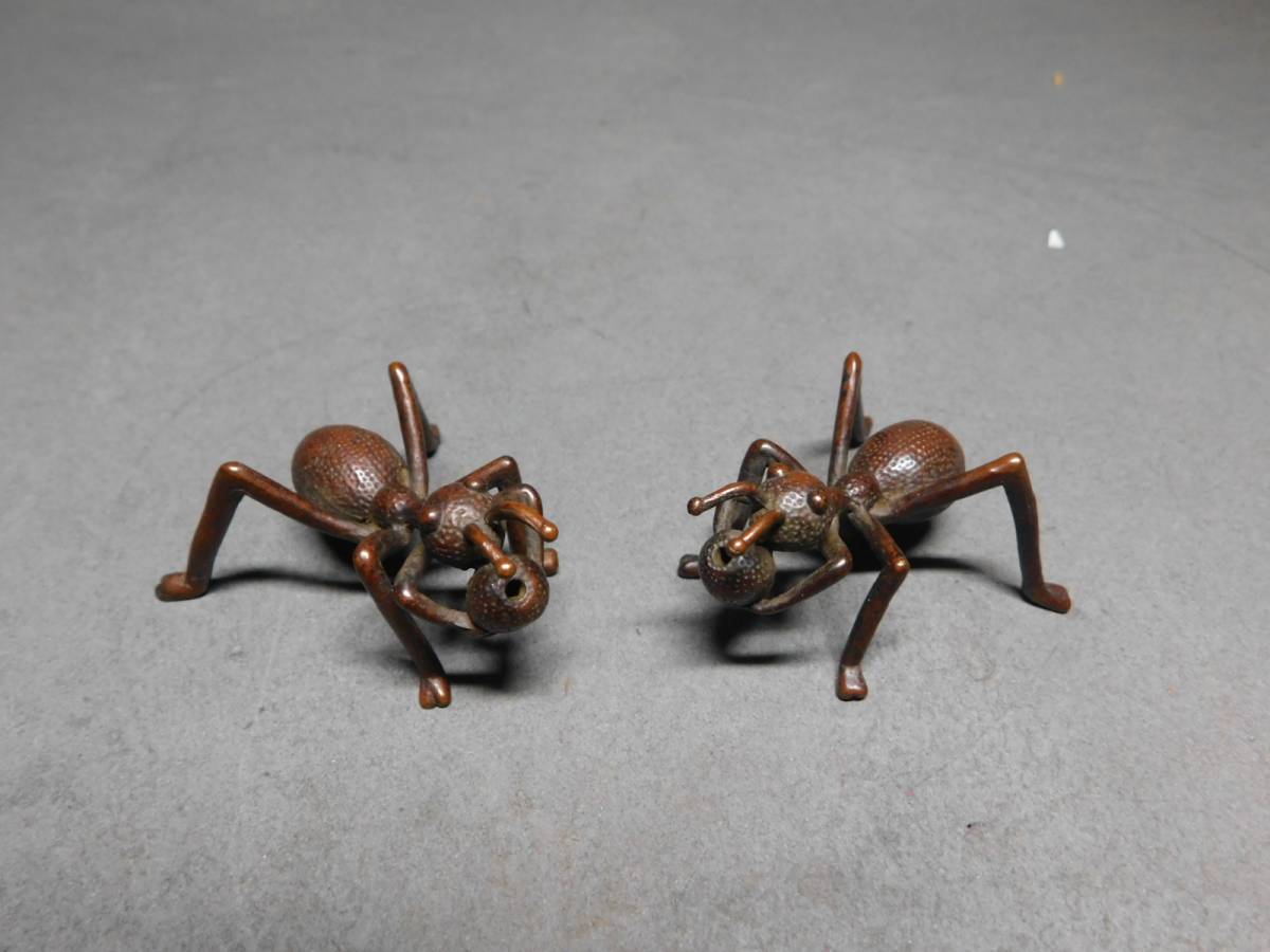 - ホーム > アンティーク、コレクション > 工芸品 > 金属工芸 > 銅製 > その他 >岡黒 極上 初だし品 唐物 銅製 蟻の筆架 2匹 盆景 美品 細密品