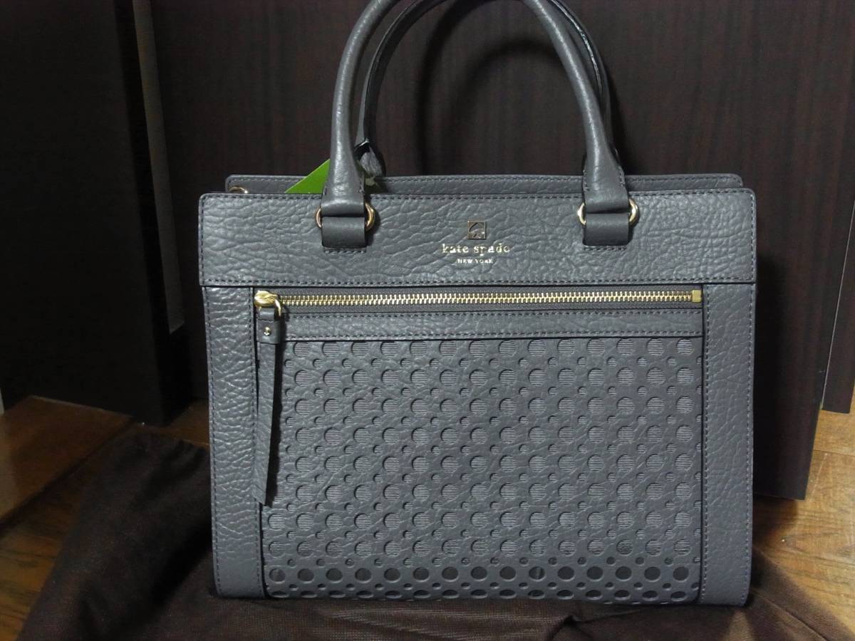 新品★Kate Spade New York 2way レザートート ハンドバッグdelaney perri lane bubbles グレー