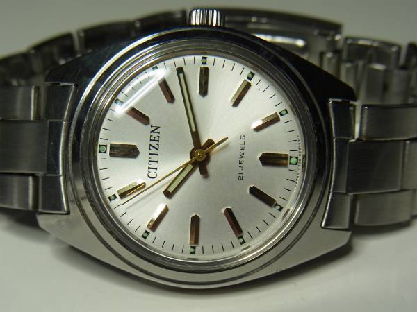 | 商品の特徴 | シチズン製21石、手巻き腕時計です。 ケースサイズ 縦約40ミリ(ラグ含む) 横 約32.5ミリ(リュウズ除く) リュウズの一段引出で、時刻修正が可能です。 リュウズに、CTZ刻印あります。 出品時は動作しておりますが、個人出品ですので動作・精度・耐久性・防水性の保証はできませんのでジャンク品として出品します。 中古品ですので、傷・汚れ・腐食が御座います、写真にてご確認願います。 シチズン製ステンレスブレス付属します(恐らく純正かと思われます)。 精度は日差1~3分程度です。(素人測定のため参考です) 送料は落札者様のご負担で、ヤマト運輸の着払い、レターパックの510・360、定形外(一律250円)の先払いにてお願いします。 他にも多数出品中です!! また、複数落札の場合は、一括入金・発送の対応可能ですので、お知らせ願います。 ノークレーム・ノーリターンにてお願い致します。