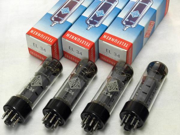 | 商品の特徴 | 独テレフンケン社ブランドの EL34 6CA7 真空管元箱入り3本プラス同等ノーブランド1本の計4本です。箱入りの3本は20年以上前に入手しそのまま保管してあった真空管です。ノーブランドの真空管は不明ですがゲッター付近の曇りもほとんど無くベース等も大変綺麗な状態です。4本とも全て同じデザインの真空管です。 TELEFUNKEN テレフンケン EL34 真空管 2本 テレフンケン真空管EL 34出品の真空管は全体のデザインから旧東ドイツのRFT社製と思われます。RFT社は大変に古い真空管メーカーです。ウェブ上にはテレフンケンから技術供与があったとの記述が見られます。その為か、なかなか優秀な真空管だと思います。 検査は三田無線の3001D型真空管試験器で行いま した。検査した条件は真空管マニュアルのデータ通りに行いました。Eb 250V、Ec2 250V、Ec -13.5V でその時の標準値は Ip 100.0mA、Ig2 15.0mA、Gm 12500 となっています。三田無線の説明書によるとおよそ±20%は合格になるとあります。しかし、この数字は相当にシビアな数値です。沢山の真空管を検査しまし たが新品でもこの数字に収まらない真空管が結構出てきます。出品の真空管と同じ球を何百本と計りましたが全体的にGmもIpも低めです。新品でも 12500にはほとんど届きません。 テレフンケン TELEFUNKEN EL34 6CA7 (2本) 真空管 @44988 ⁄ 中古出品の真空管の測定値はGmが 9970 から 10660 で、Ipが 94.2mA から 108.2mA で、Ig2が 14.1mA から 16.9mA です。ノーブランドの真空管が一番大きな値になっています。ノーブランドの真空管は汎用の白箱に入れてお送りいたします。 発送は勝手ながらヤマト運輸の宅急便と日本郵便のゆうパックに限らせて頂きます。どちらの方法でも100円 安い持ち込み割引き後の料金でお送りします。送料は着払い元払いのどちらかご希望の方法でお送りできます。料金はどちらの方法でも同額です。