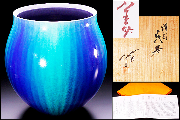 | 商品の特徴 | 商品説明 碧明釉 花瓶 三代 徳田八十吉(正彦時代作)共箱 人間国宝