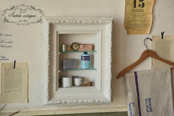 | 商品の特徴 | 古い額縁フレームのウォールラックです。 フレームに施された装飾は息をものむ存在感。 そんなフレームはウォールラックへと形を変え カジュアルな空間にも取り入れやすくなりました。 ガラスの棚板は高さ調節はできませんが 取り外しが可能です。 裏面には壁掛け用の金具が付いております。 (ネジの付属なし) お部屋の壁に掛ければ、個性的なウォールラックとして 空間に遊び心を加えてくれそう。 お気に入りの小物を飾れば、1枚の絵画作品のように。 【SIZE(cm)】 H51.3×W41.8×D13.4 棚サイズ(上から) ①H10.3×W22.6×D8.9 ②H10×W22.6×D8.9 ③H10.5×W22.6×D8.9 ※多少の誤差はご了承ください。 ↓ ↓ ↓ ↓ ↓ ↓ こちらの商品以外にも多数商品を出品しております。 ぜひそちらもご覧くださいませ。 Siettela 出品オークション商品一覧