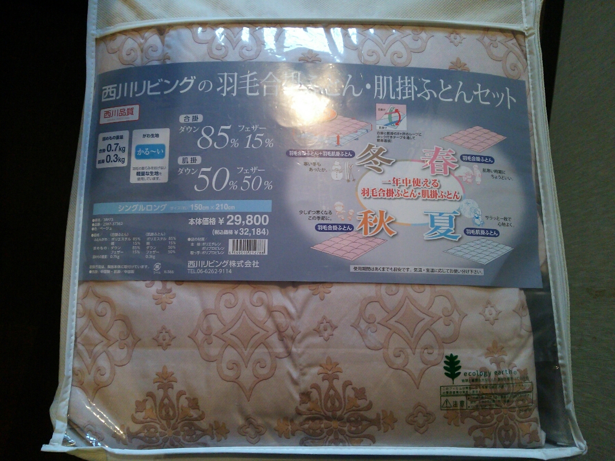 | 商品の特徴 | 西川羽毛2点セット 西川 暖かさの選べる羽毛布団 合掛け 肌掛け 2枚合わせ シングル※詰めもの重量が異なるふとんが2つ入ってます 生地 365日使える2枚合わせ羽毛布団&5層クッション敷き布団セット \u2013 西川ポリエステル85%綿15% 365日使える2枚合わせ羽毛布団&5層クッション敷き布団セット \u2013 西川ダウン85%フェザー15% 1羽毛合い掛け0.7㎏ 西川 羽毛肌掛け 2枚組の通販2羽毛肌掛け0.3㎏ 中国製 西川リビング 365日使える2枚合わせ羽毛布団&5層クッション敷き布団セット \u2013 西川サイズはシングルサイズ(150×210㎝)