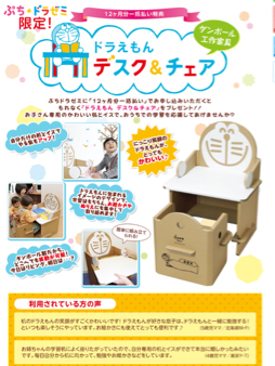 | 商品の特徴 | 小学館 - ドラゼミ限定(非売品)ドラえもん デスク&チェアご覧いただきありがとうございます。 ----- 小学館 - ドラゼミ限定(非売品)ドラえもん デスク&チェア2015年度 ぷちドラゼミ プレコース(年少)、年払い特典のデスク&チェアを出品します。 新品未開封です。 小学館 - ドラゼミ限定(非売品)ドラえもん デスク&チェアデスク&チェアの詳しいサイズは、ドラゼミホームページをご参考ください。 ぷちドラゼミ 未開封:ドラえもん ドラゼミ デスク&チェア ドラえもん画像2の外箱に配送伝票を貼ることをご了解下さい。 発送は、特にご希望がなければはこboon5kg以下(大阪府より)が一番お安いです。 小学館 - ドラゼミ限定(非売品)ドラえもん デスク&チェアその他の宅急便、着払いもご要望があれば対応いたします。(140サイズ) 小学館 未使用ドラえもんデスク\u0026チェア(ドラゼミ 入会特典お支払いはゆうちょ銀行、もしくはyahooかんたん決済。 ノークレームノーリターン。 よろしくお願いします。 |