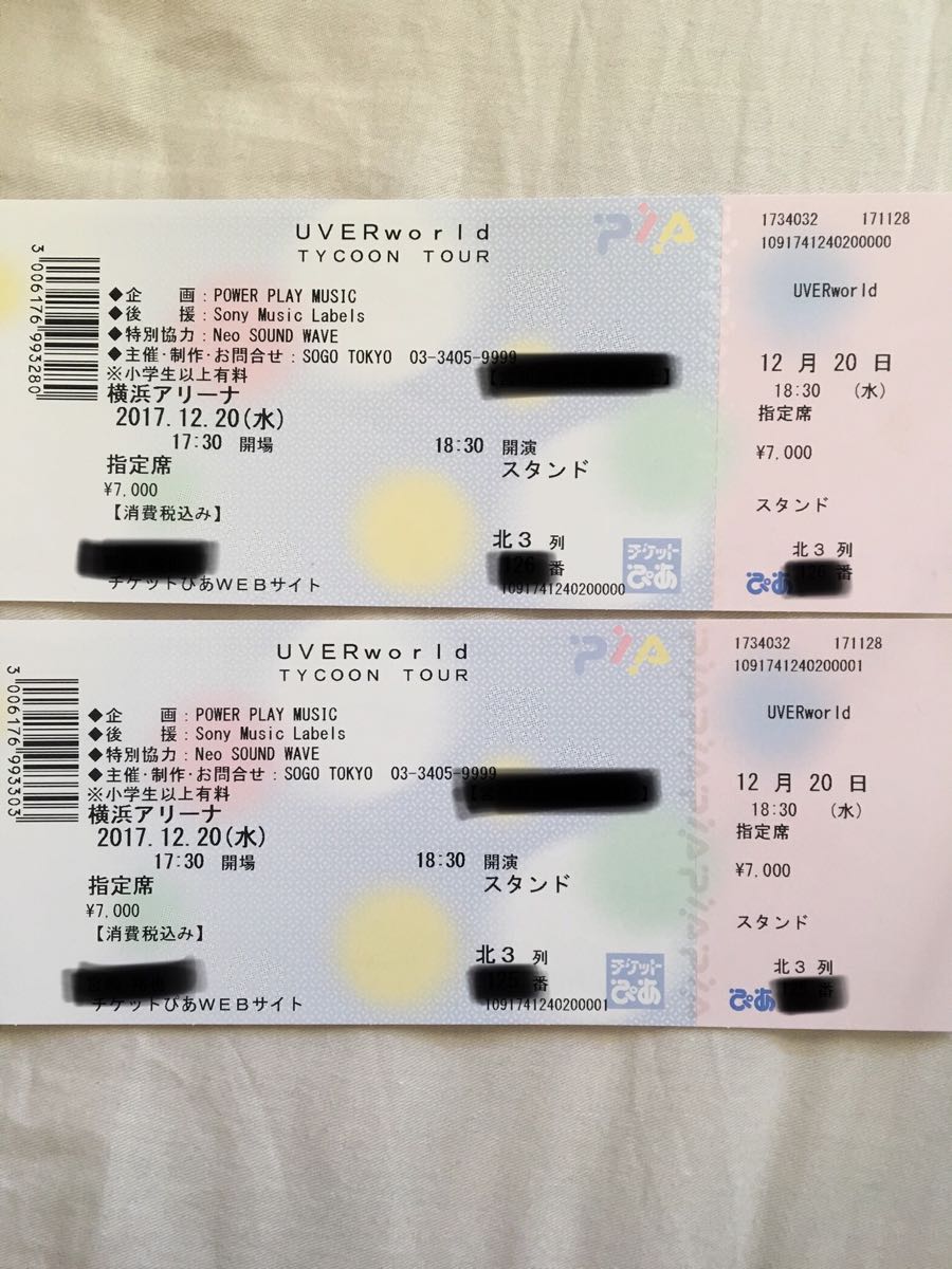 - ホーム > チケット、金券、宿泊予約 > 興行チケット > 音楽 > ジャパニーズポップス > 関東 >【定価以下】UVERworld 12/20 2枚連番ペアチケット 北3列 120番代