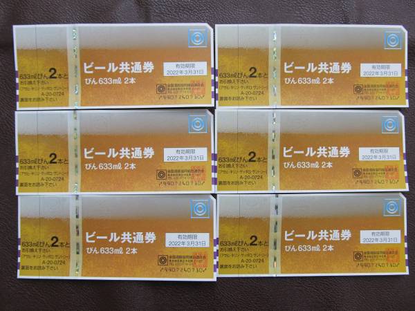 | 商品の特徴 | ビール券816円(大瓶2本) | 金券ショップ スマイルチケット 送料無料びん633ml 2本のビール券が6枚です。有効期限が2022年3月31日です。