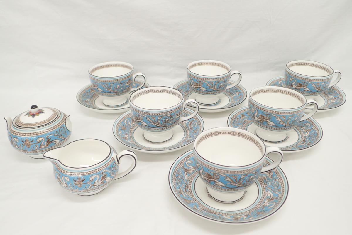 ウェッジウッド フロレンティーンターコイズ カップ&ソーサー6客 シュガーポット クリーマー WEDGWOOD 管TKY12052JG