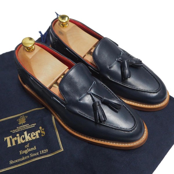 Tricker's(トリッカーズ)M7165 タッセルローファー レザーシューズ 7.5 メンズ 靴 美品 ダイナイトソール Tassel Loafer ネイビー